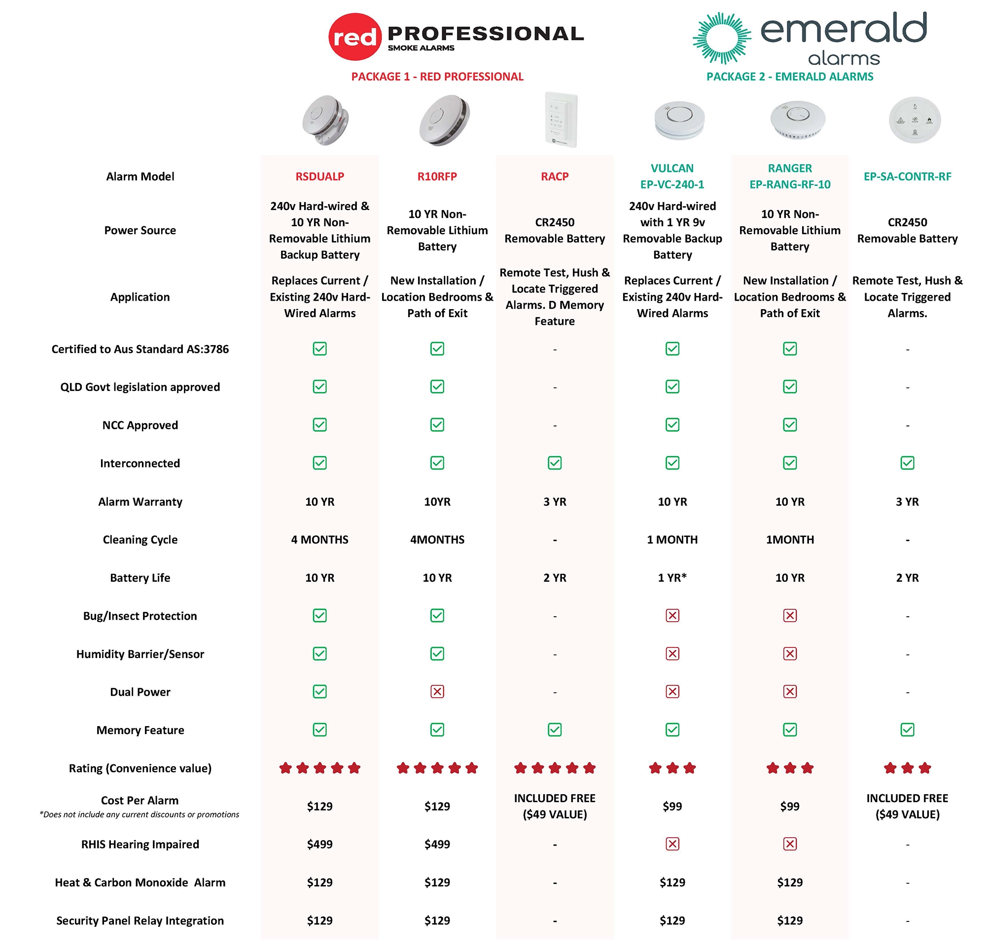 Smoke Alarm Services has created this comparison chart to help you choose the smoke alarm that best suits your needs.
